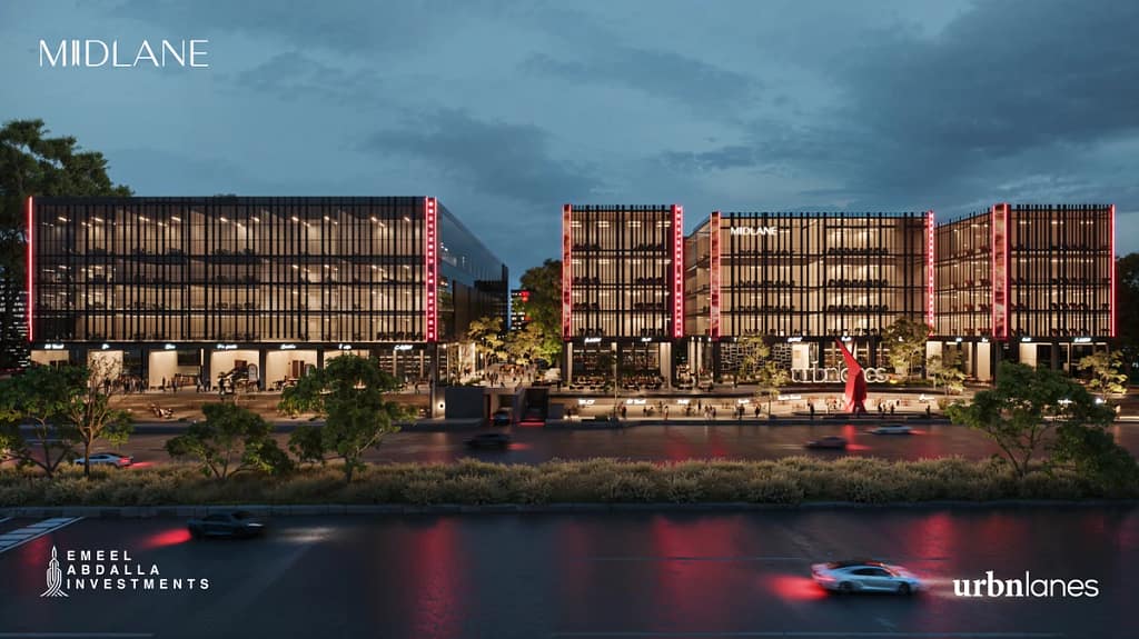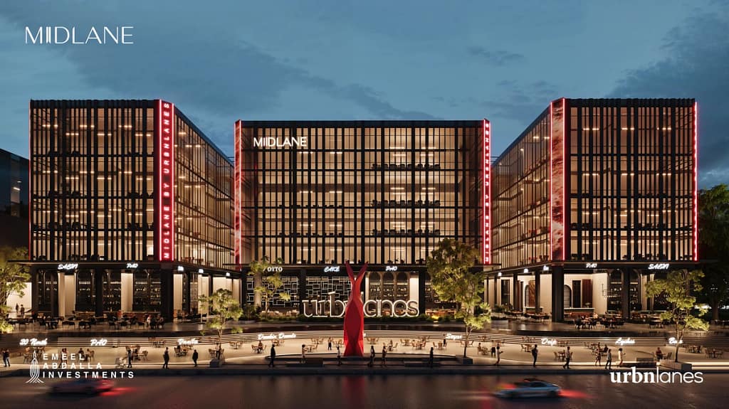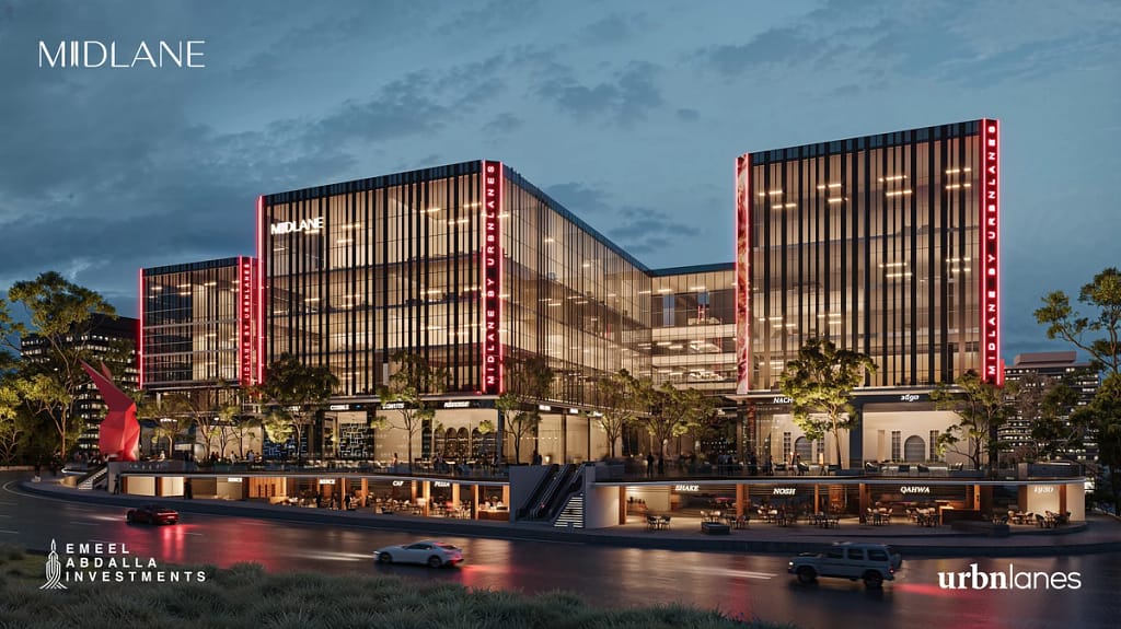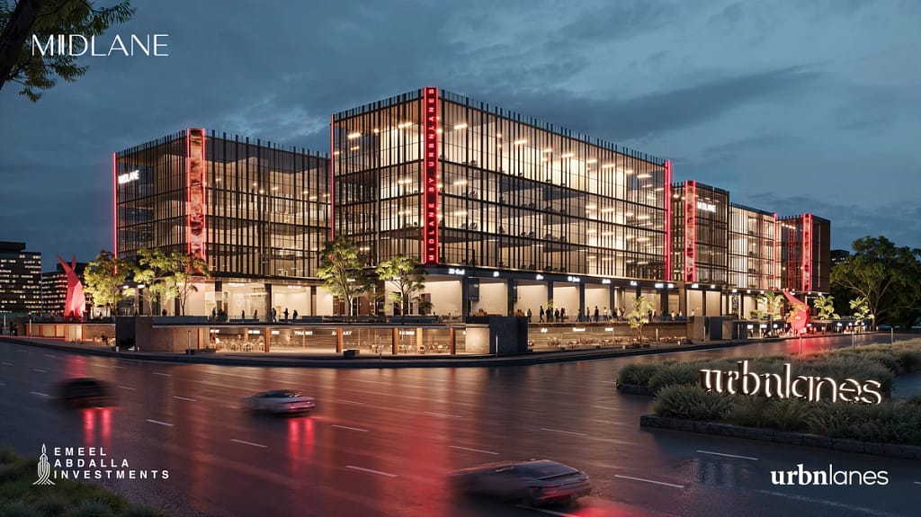 Strategically positioned in the heart of New Cairo’s vibrant district, Midlane boasts a prime location that places it at the epicenter of bustling activity, offering unparalleled accessibility and visibility for both businesses and customers. Located directly on Northern Nintey Street and Mohamed Naguib Axis, with close proximity to key city hubs, Midlane is the new landmark in New Cairo. Midlane, a magnificent architectural masterpiece, is built on 15,000 SQM of land with a total built-up area of 85,000 SQM. The development includes three basement floors, a ground floor, and five additional floors.